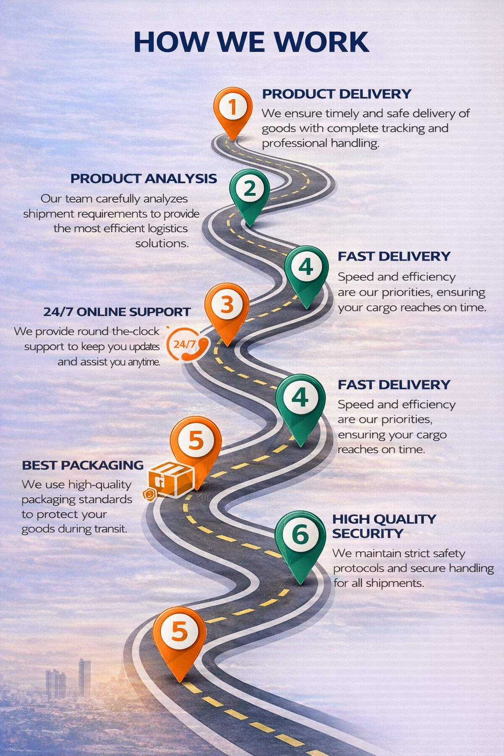 We focus on innovation, efficiency, and customer satisfaction to deliver world-class logistics services.